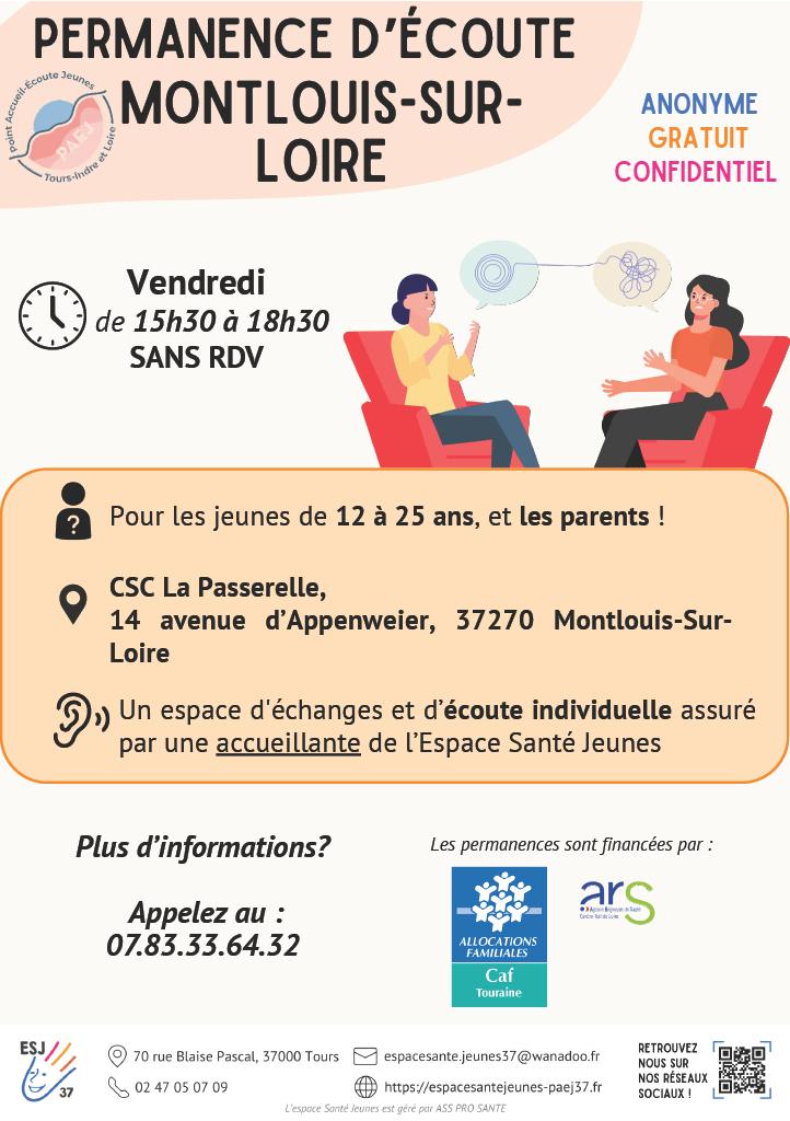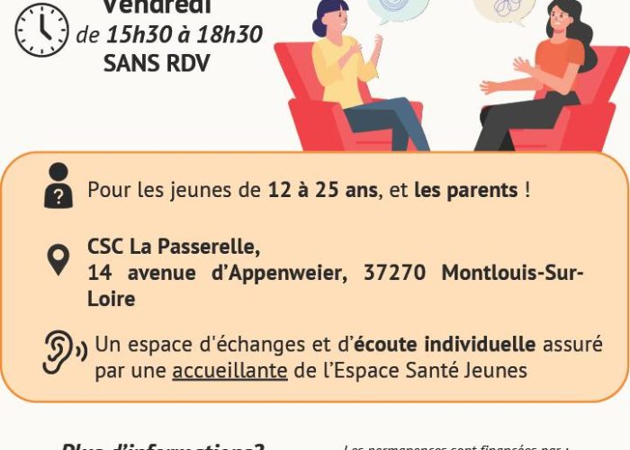 À partir du 9 janvier 2026, l’Espace Santé Jeunes 37 proposera des permanences d’écoute au CSC La Passerelle chaque vendredi