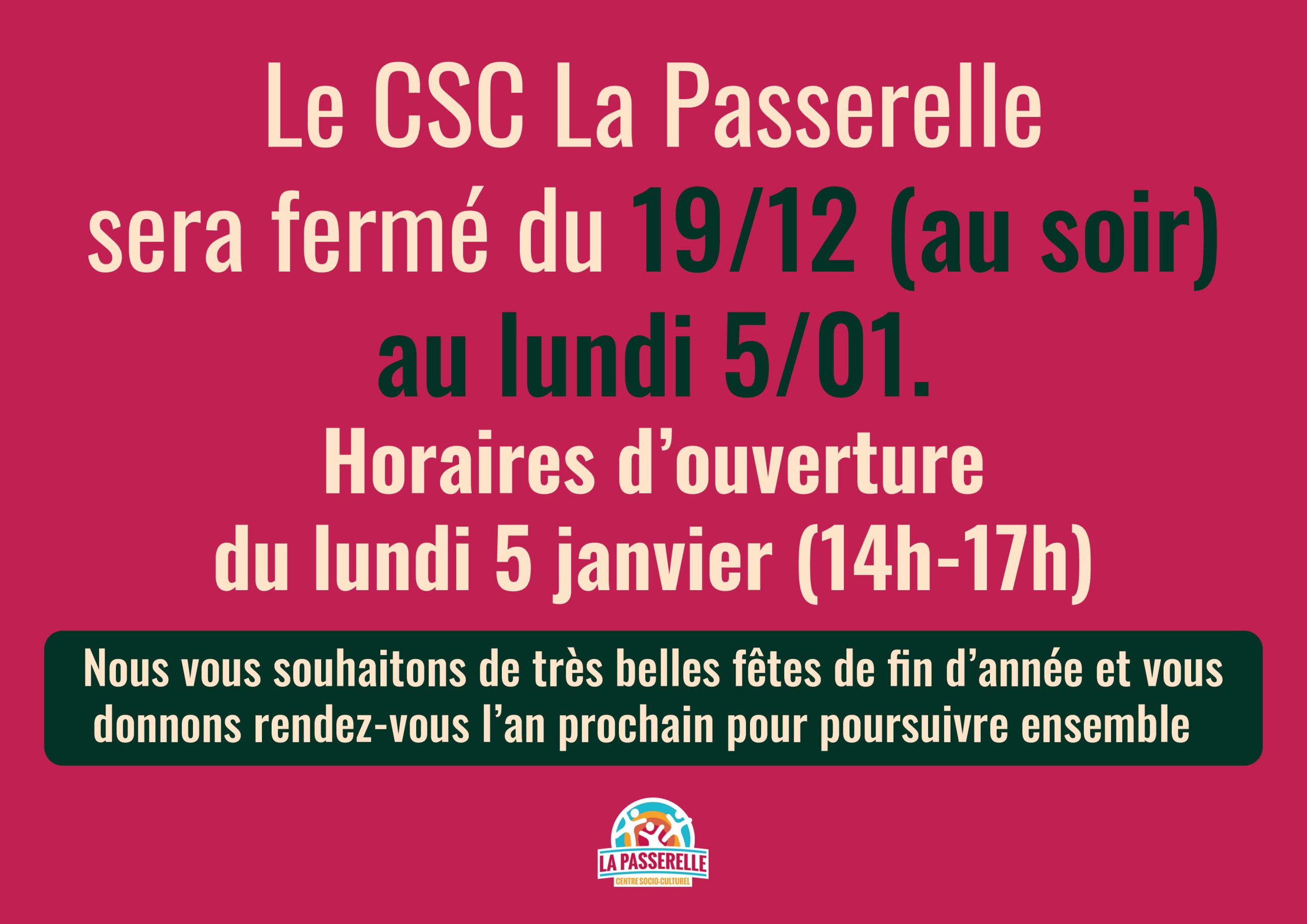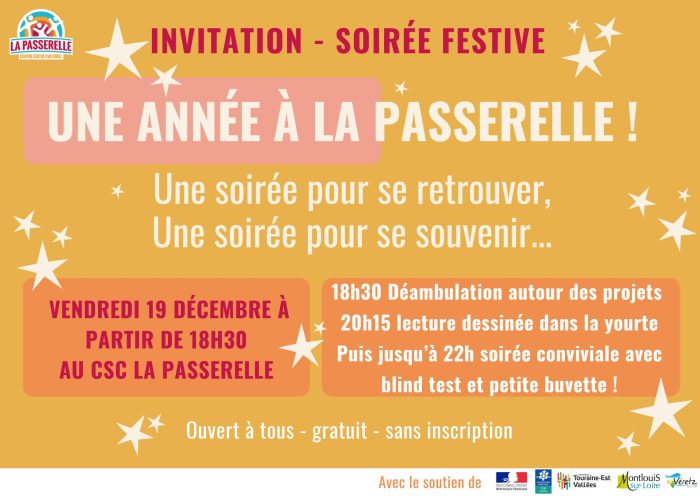 Rendez-vous le vendredi 19 décembre à partir de 18h30, au CSC La Passerelle pour une soirée festive autour des projets réalisés tout au long de l’année 2025, suivi d’une lecture dessinée et pour finir un blind test
