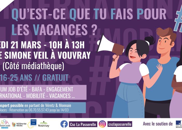 Le 21 mars prochain aura lieu notre événement « Qu’est-ce que tu fais pour les vacances ? » pour une cinquième édition ! Au programme, job d’été, mobilité internationale, engagement, BAFA et d’autres.. À vos agendas ! 🤗