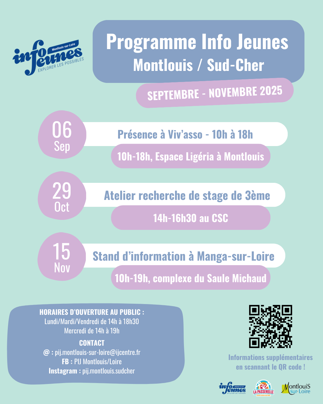 En dehors de ces horaires, il est possible de prendre un rendez-vous avec un informateur jeunesse >>> pij.montlouis-sur-loire@ijcentre.fr